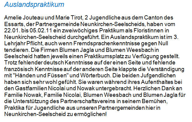 Auslandpraktikum - Partnerschaftsverein Neunkirchen-Seelscheid