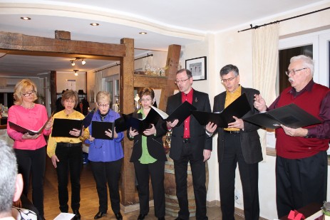 Zum offiziellen Essen im Caleo in Neunkirchen, zu dem die Bürgermeisterin Frau Sander eingeladen hatte, war auch 1. stv. Bürgermeister Herr Galinsky anwesend. Frau Bandow, 2. stellvertretende Bürgermeisterin war leider erkrankt. Das Essen wurde vom Seelscheider Vokalensemble akustisch verfeinert.
