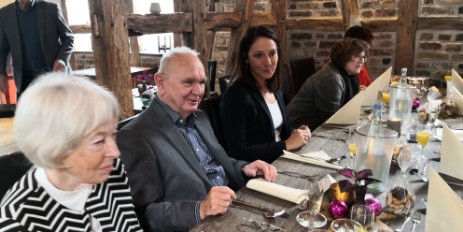 Das Mittagessen wurde im Gasthaus „Bockenbusch“ in Pohlhausen eingenommen. Nach einem Glas Sekt gab es Maronencremesuppe, Schweinekrustenbraten mit Rosmarinkartoffeln und Rahmwirsing sowie Dessertvariationen und Ansprachen der Vertreter der Partnergemeinden, in denen immer wieder betont wurde, wie groß die Bedeutung der Bürgerbegegnungen für ein friedliches Europa sind.