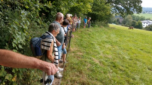Nach der erwähnten "Aufwärmwanderung" durch das Naafbachtal ging es am Dienstag auf zum Heckberg bei Much. Dort konnten, auf relativ ebenen Wegen und je nach Fitness 4 km, 6 km bzw.