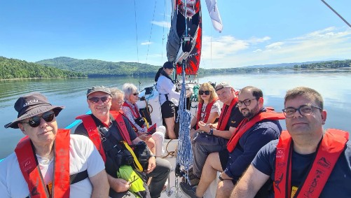 Am Samstagmorgen brachen wir nach dem Frühstück, bei sommerlichen 25°C, zum gemeinsamen Segelausflug auf dem Zywieckie-See. In einer wunderschönen Landschaft segelten wir zum größten Teil ohne Motorunterstützung über 2 Stunden. Zum Mittagessen ging es dann in ein nahegelegenes Restaurant Qubus in Bierna.