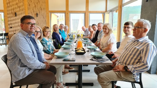 Die Anreise erfolgte am Freitag mit dem Flugzeug bzw. Auto. Die Unterbringung an diesem Wochenende erfolgte für die Gäste aus Bicester und Neunkirchen-Seelscheid in einem neuen Center-Haus "Spolecznik" der Stiftung "Klaster" (https://www.klaster.org.pl/). Nach dem sich alle ein wenig ausruhen konnten, trafen wir uns zu einem Begrüßungsabendessen im Restaurant „Zatoka Park“ in Międzybrodzie Bialskie. Da wurden wir u.a. von dem Bürgermeister Lukas Harat und dem dortigen Vorsitzenden des Partnerschaftsvereins und stellvertretende Bürgermeister Maciej Krakowinski herzlich begrüßt.