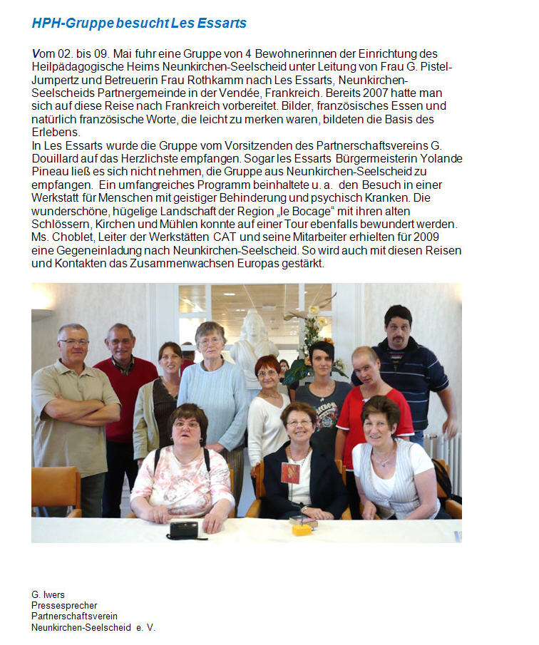 HPH-Gruppe Les Essarts - Partnerschaftsverein Neunkirchen-Seelscheid