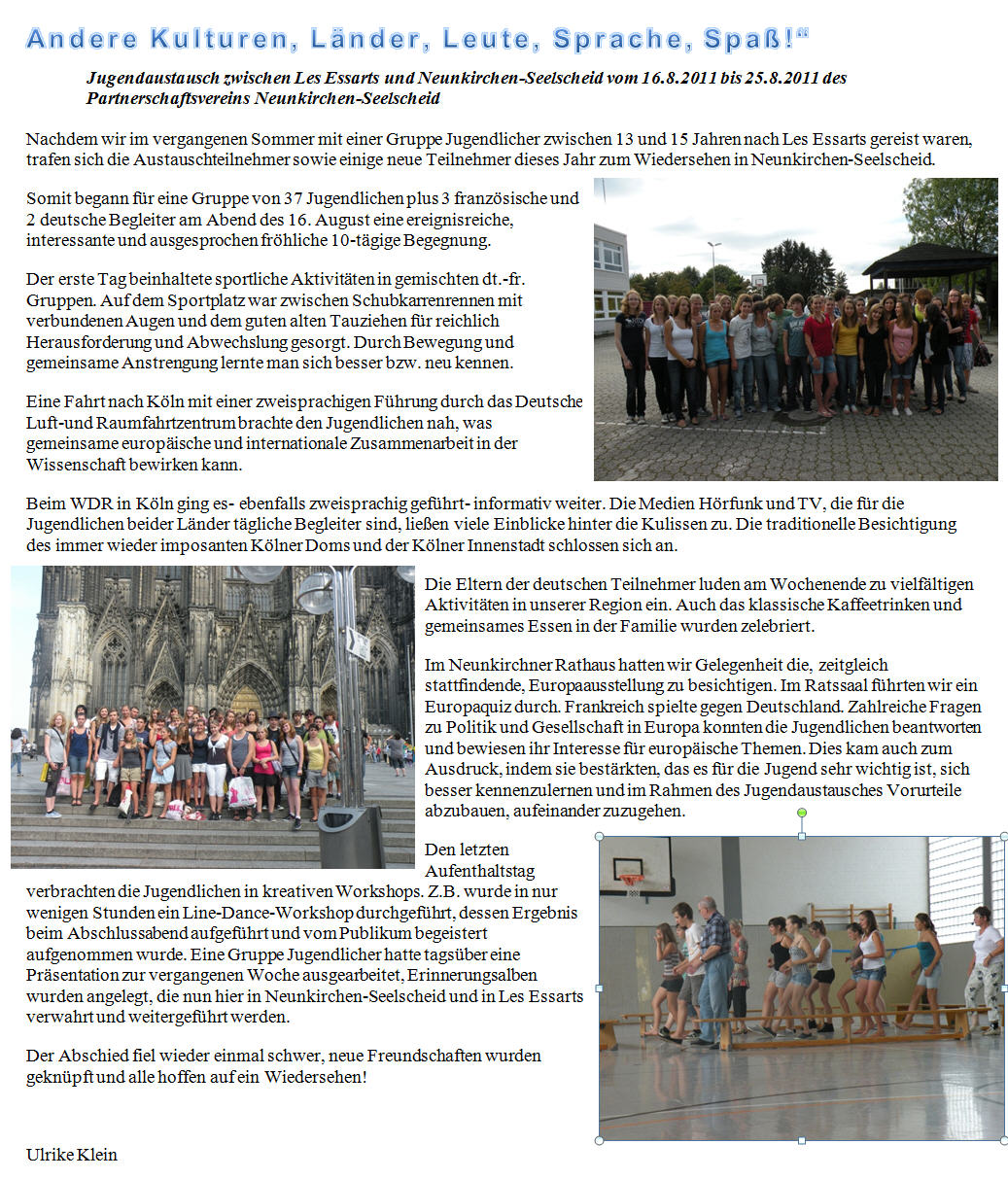 Jugendaustausch 2011 - Partnerschaftsverein Neunkirchen-Seelscheid