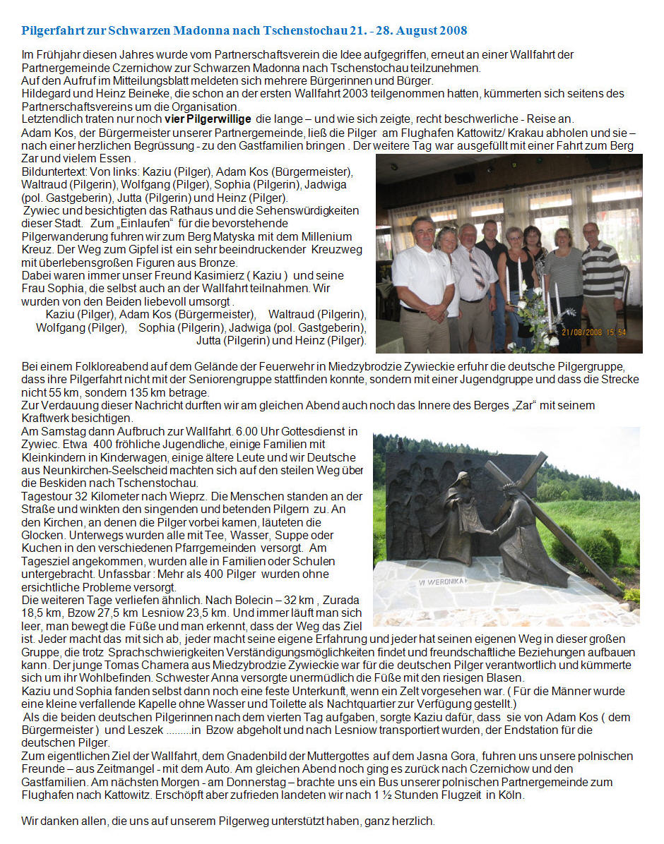 Pilgerwanderung 2008 - Partnerschaftsverein Neunkirchen-Seelscheid
