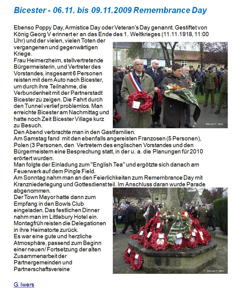 Remembrance Day 2009 - Partnerschaftsverein Neunkirchen-Seelscheid