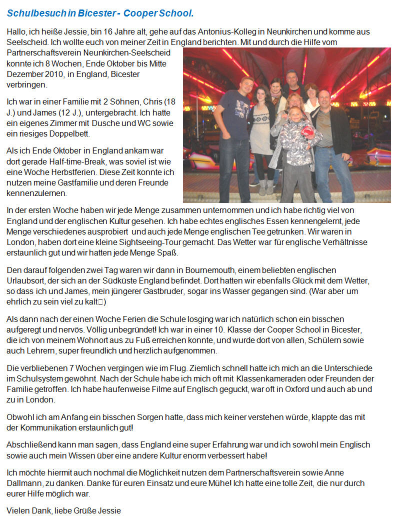 Schulbesuch in Bicester - Partnerschaftsverein Neunkirchen-Seelscheid