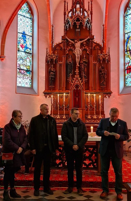 Um 14:30 Uhr nahm die Gruppe an der Andacht in der katholischen Kirche St. Georg in Seelscheid teil. Hier hatten unsere Gäste die Gelegenheit in ihrer Landessprache frohe Weihnachten den Anwesenden zu wünschen. Frau Pearce aus Bicester sagt dann noch auf Deutsch, dass Neunkirchen-Seelscheid ihre zweite Heimat geworden sei.