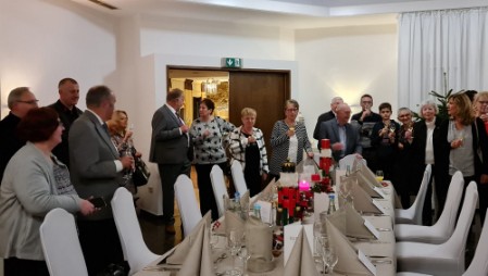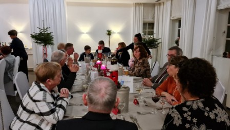Im Restaurant Kurfürst waren die Tische im Saal weihnachtlich mit Tannengrün und Nussknackern für das gemeinsames Abendessen festlich geschmückt. Herr Parpart begrüßte Gäste und Gastgeber und wies in seiner Rede auf die Bedeutung von Städtepartnerschaften hin, die gerade in so kritischen Zeiten wie heutzutage eine große Bedeutung hätten. Die Gäste trugen sich dann noch ins Gästebuch der Gemeinde ein . Es wurde ein guter, harmonischer Abend mit vielen Gesprächen. Damit war für die Meisten das offizielle Programm abgeschlossen